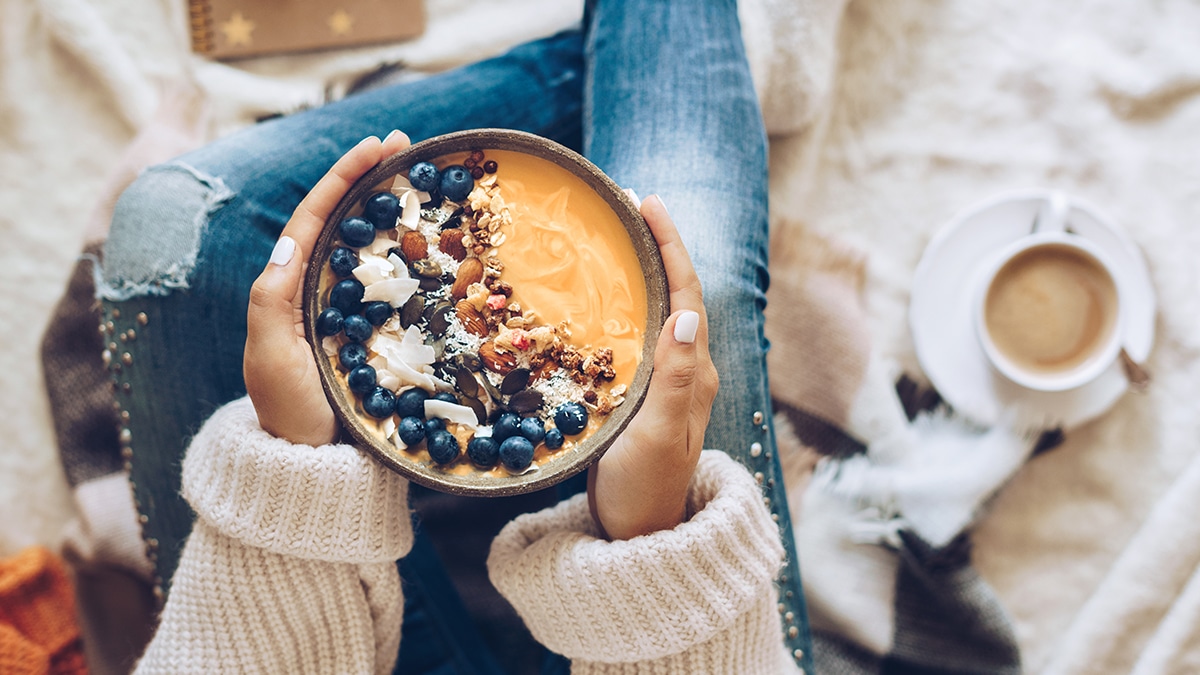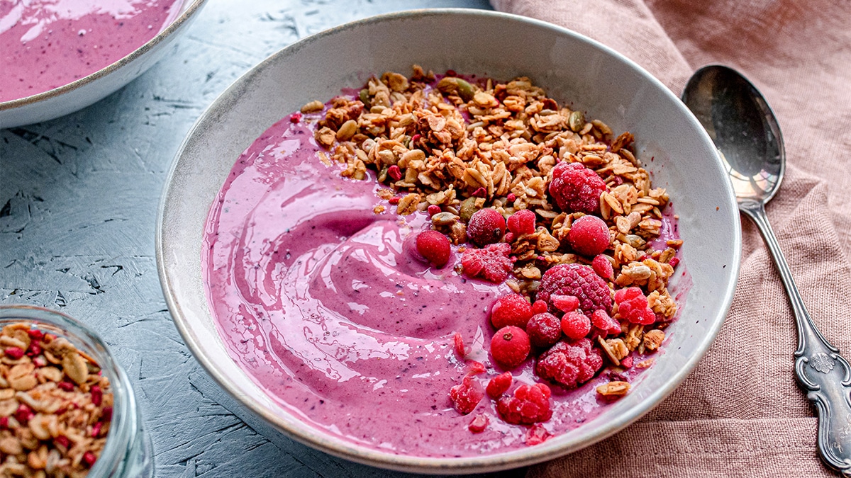 The buttery avocado and sweet mango in this recipe provide healthy mono-unsaturated fats, fiber, and a high dose of vitamin C.
